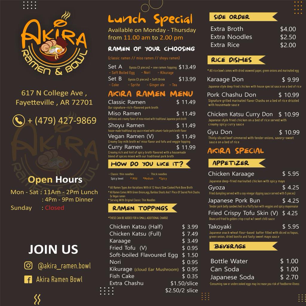With rave reviews highlighting the freshness and quality of each dish, Akira Ramen & Bowl is a must-visit for anyone craving authentic Japanese cuisine!
